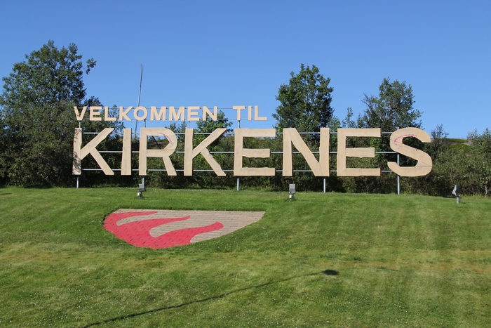 Das Ortsschild von Kirkenes ist nicht zu übersehen.